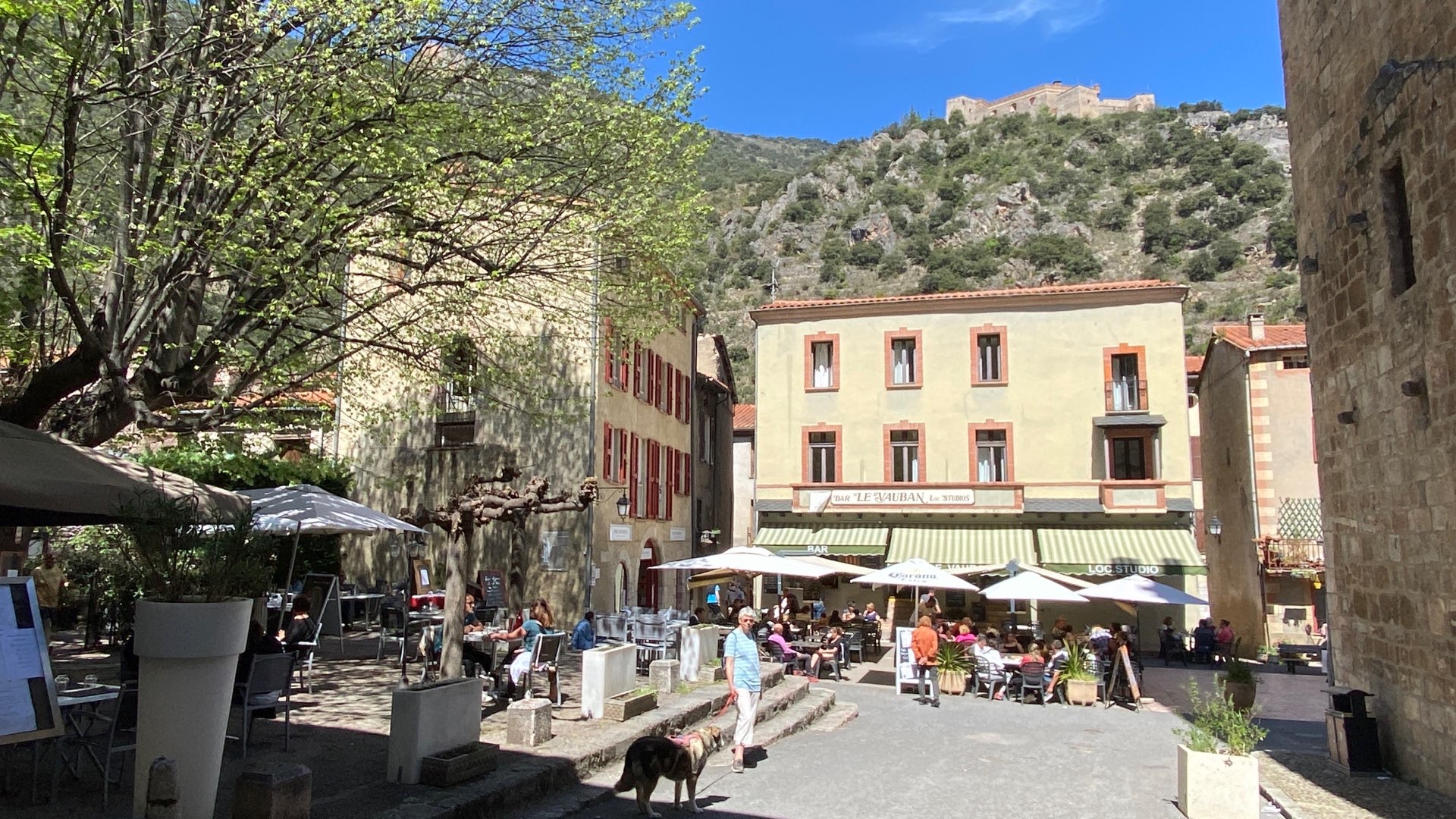 Nach dem Frühstück haben wir unseren Wassertank aufgefüllt, die Toilettenbox entleert und das Grauwasser abgelassen. Die Bezahlung und Ausfahrt über den Automaten hatte prima geklappt. Dann ging die Fahrt weiter ostwärts nach Villefranche-de-Conflent. Wieder war es nur 17 km an gut ausgebauter Strecke. Regina war ganz begeistert von den Ausblicken unterwegs, ich als Fahrer habe davon wieder nicht viel mitbekommen.